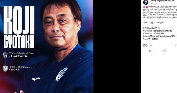Sáng 1.8, Liên đoàn Bóng đá Campuchia (FFC) đã chính thức thông báo HLV Koji Gyotoku sẽ đảm nhận vai trò dẫn dắt đội tuyển bóng đá nữ quốc gia tham dự giải vô địch bóng đá nữ Đông Nam Á MSIG Serenity Cup™ 2025, diễn ra tại Việt Nam từ ngày 6 đến 19.8.2025.